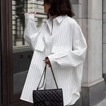 Weißes oversized Hemdkleid mit Streifen – Streetstyle-Look