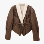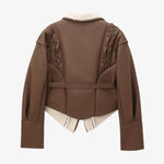 Diese modische Kunstlederjacke in einem warmen Braunton kombiniert Funktionalität und Stil. Mit ihrem weichen Teddy-Futter, den auffälligen Schnürdetails und dem Taillengürtel ist sie perfekt für kühle Tage geeignet. Der einzigartige Schnitt verleiht jedem Outfit eine moderne Note.