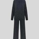 Dieses Strickset bietet die ultimative Kombination aus Komfort und Stil. Mit seiner lockeren Passform und dem hohen Halsausschnitt ist dieses Set perfekt für einen entspannten, stilvollen Look. Das Set besteht aus einem locker sitzenden Pullover und einer Hose mit weitem Bein - ideal, um Sie an kühleren Tagen warm und bequem zu halten. Das weiche Material fühlt sich angenehm auf der Haut an und macht dieses Set perfekt für einen Tag zu Hause oder einen lässigen Ausflug.