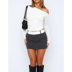 Mit diesem schicken Off-Shoulder-Top mit gerafften langen Ärmeln sind Sie modisch auf der Höhe der Zeit. Das Oberteil hat eine schmeichelhafte, körpernahe Passform, elegante Raffungen und einen trendigen asymmetrischen Ausschnitt und ist damit die perfekte Wahl für jeden Anlass. Egal, ob Sie einen legeren Ausflug machen, eine Party besuchen oder einen Abend in der Stadt verbringen, dieses Oberteil verleiht Ihrem Look einen modernen und raffinierten Touch.