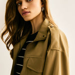 - Vielseitig kombinierbar – Perfekt als leichte Übergangsjacke oder als cooles Layering-Piece über einem Crop-Top oder Rollkragen.