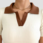 Lässiges Polo Farbe Block gekerbte Kragen gestrickt Top